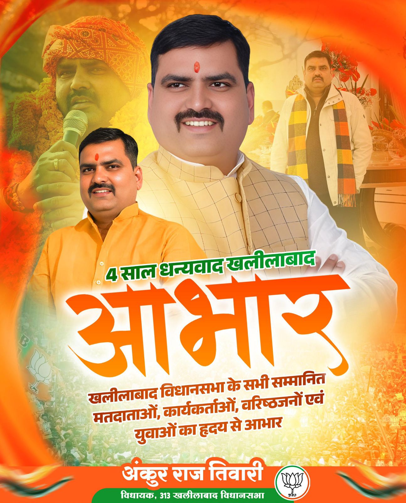 उन्होंने कहा कि खलीलाबाद विधानसभा क्षेत्र की जनता, पार्टी कार्यकर्ताओं और समर्थकों के सहयोग, विश्वास और मार्गदर्शन से ही उन्हें जनसेवा करने का अवसर मिला। उन्होंने क्षेत्रवासियों का धन्यवाद देते हुए कहा कि जनहित और क्षेत्र के विकास के लिए उनका प्रयास निरंतर जारी रहेगा।